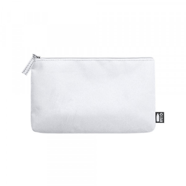 Natuurlijn schoonheidstasje van bestendig 600D RPET, gemaakt van gerecycled plastic om het hergebruik van plastic afval aan te moedigen en bij te dragen aan de duurzaamheid van de planeet. Met rits en bijpassende kleurentrekker. Verkrijgbaar in een groot aantal kleuren, met RPET-kenmerk op het etiket aan de buitenkant.