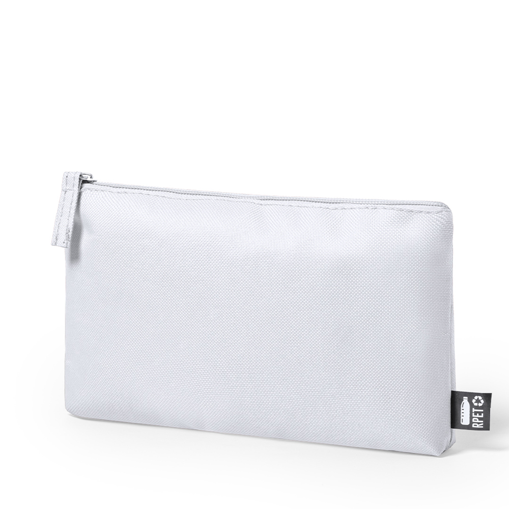 Natuurlijn schoonheidstasje van bestendig 600D RPET, gemaakt van gerecycled plastic om het hergebruik van plastic afval aan te moedigen en bij te dragen aan de duurzaamheid van de planeet. Met rits en bijpassende kleurentrekker. Verkrijgbaar in een groot aantal kleuren, met RPET-kenmerk op het etiket aan de buitenkant.