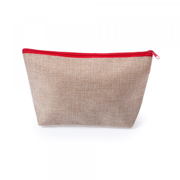 Multifunctionele make-uptas van polyester met tweekleurige afwerking en ritssluiting in verschillende kleuren en handvat in bijpassende kleur.