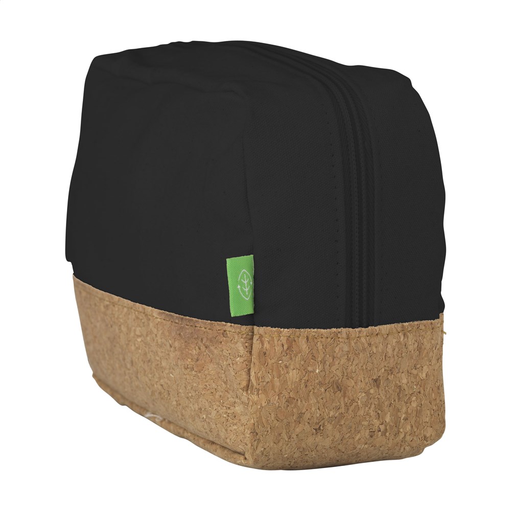 Toilettas van natuurlijke materialen: organisch canvas en kurk. Met rits, handige draaglus en...meer
